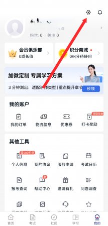 1、在我的页面,我们需要点击设置的图标,进入设置界面。