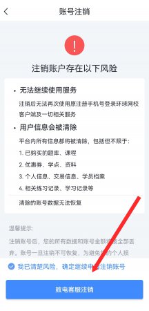 4、在注销的说明页,点击致电客服注销按钮,完成账号注销。