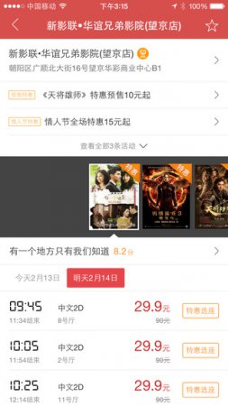 4. 提供超值的电影票团购,方便、快捷、便宜,让每一位消费者获得真正的优惠。