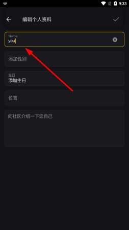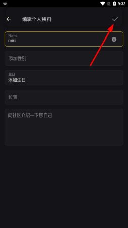 4、输入完成后,点击编辑个人资料页面右上角的对勾图标,保存修改后的名字。
