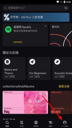 1、打开吉他助手app,点击底部导航栏最右侧的个人资料图标。