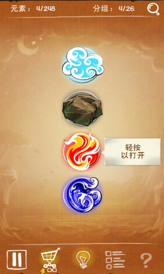 3、界面出现四个元素,玩家点击不同的两个即可结合;