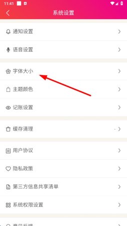 3、在系统设置页面中,点击字体大小选项,进入字体大小调整界面。