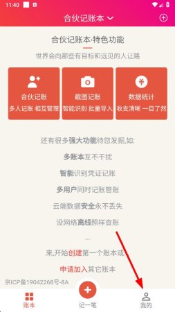 1、打开合伙记账本app,点击底部导航栏最右侧的我的选项,进入个人中心界面。