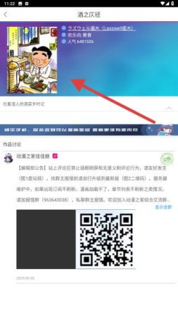 3、随机点击一个漫画,可以了解到漫画的类型以及每位用户进行的作品讨论,用户可以参与其中也可浏览漫画。