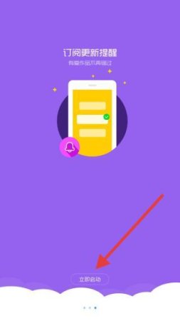 1、进入该软件可以浏览三种不同的图片,观察订阅更新的提醒,了解后点击立即启动进入到后面的页面内。
