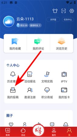 1、进入到我的页面,需要点击我的投稿按钮,进入投稿的页面。