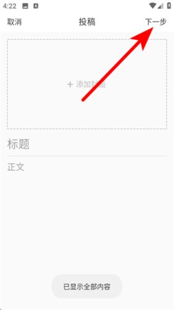 3、在页面添加封面、填写标题和正文后,点击下一步的按钮。