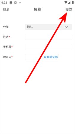4、在信息填写页面,填写信息获取验证码后,点击提交完成投稿操作。