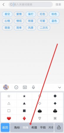 2、在符号页面底部的标签栏中,需要从左向右进行滑动标签,找到特殊的标签栏。