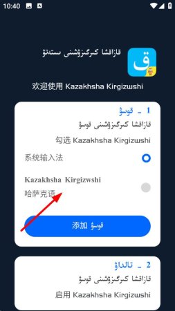 3、勾选完成后点击界面中的添加按钮,接着在启用界面选择Kazakhsha Kirgizushi,点击启用按钮即完成设置。