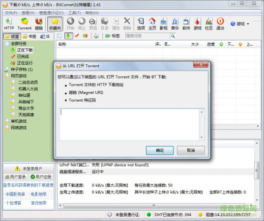 2.从URL打开Torrent文件:点击“文件”,点击“从URL打开Torrent”后,将URL复制至对话框中,等待系统下载Torrent文件后,选择下载位置,即可开始下载;