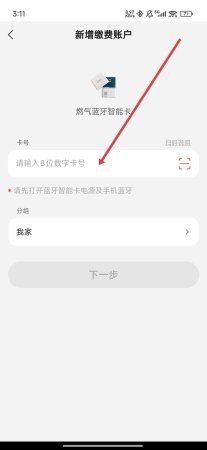 3、在新增缴费账户中,点击输入框填写要缴费的卡号信息。