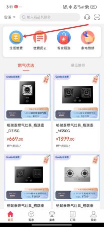 1、在e城e家首页面中,点击生活缴费选项,进入缴费操作。