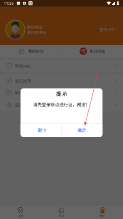 2、此时弹出提示框提示先登录哆点通行证,点击提示框中的确定按钮进入通行证登录页面。