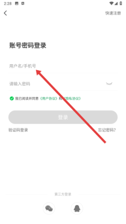 3、在进入到登录页面时,先需要点击勾选我已阅读并同意按钮后进行操作。