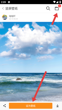 2、在竖屏壁纸页面,先点击底部设为壁纸,系统会先下载壁纸,然后点击右上角下载管理页面。