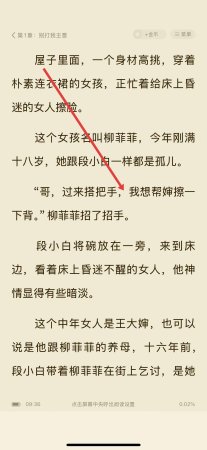 3、进入阅读界面后,就可以开始阅读小说内容。阅读时,点击屏幕中央还能呼出阅读设置菜单,对字体大小、亮度、背景等进行个性化设置。