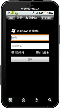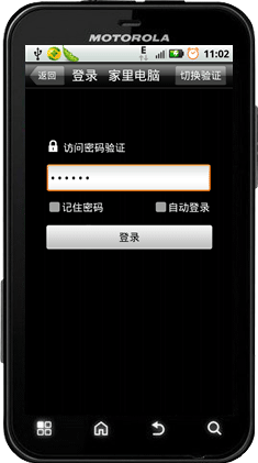 Android版主控端登录远程主机与PC主控端登录远程方式一样,都需要进行二次密码验证,windows账户验证和访问密码验证。