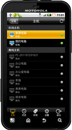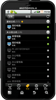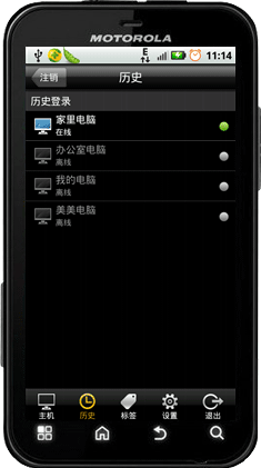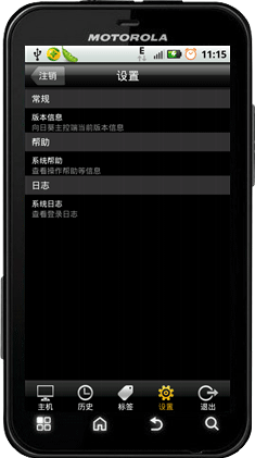 在下方的的操作中我们可以看到除了主机外还有历史、标签、设置、退出四个功能。