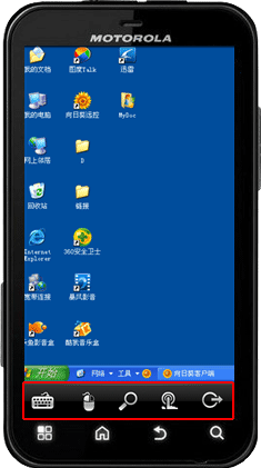 在远程主机桌面下方,我们可以看到有五个功能按钮,分别代表键盘、鼠标、缩放大小、设置、退出。