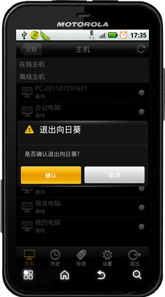 点击退出按钮,确认退出后,可直接退出向日葵Android主控端。