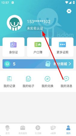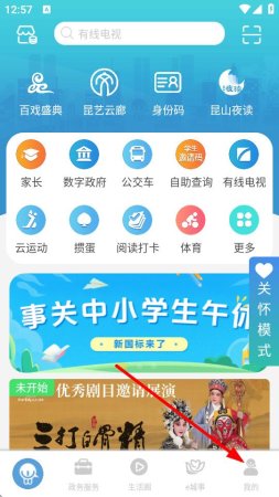 1、打开智慧昆山APP,点击底部导航栏最右侧我的选项进入个人页面。