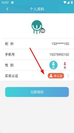 2、在个人页面中,点击头像下方未实名认证字样,进入个人资料界面。