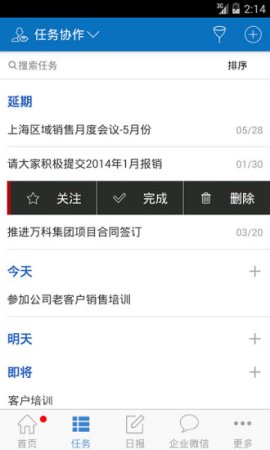 4、项目协作:项目和任务作为云OA中不可少的应用,项目任务分解,相关事项关联系统化的推进,任务管理更好的将执行过程及时有效反馈沟通;