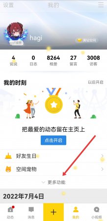 1、打开qq空间APP,进入底部导航栏我的页面后,需要点击更多功能的选项。