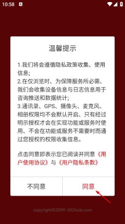 1、打开邮掌柜应用,弹出“温馨提示”框,认真阅读后点击“同意”,进入到登录页面。