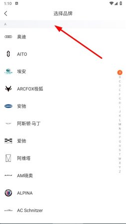 3、在选择品牌页面,挑选要出售车辆的品牌,完成后返回卖车信息填写页面。
