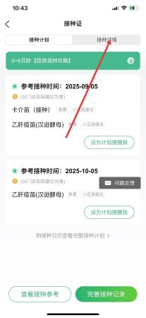 接种时间和疫苗种类自动提醒,什么时候要打疫苗、打什么疫苗清清楚楚,再也不会忘记和漏种了。