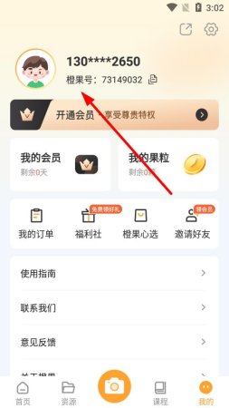 1、打开橙果错题本app,点击底部导航栏中的我的图标,进入个人界面。