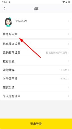 2、在设置界面中找到并点击账号与安全选项,进入账号与安全相关设置页面。