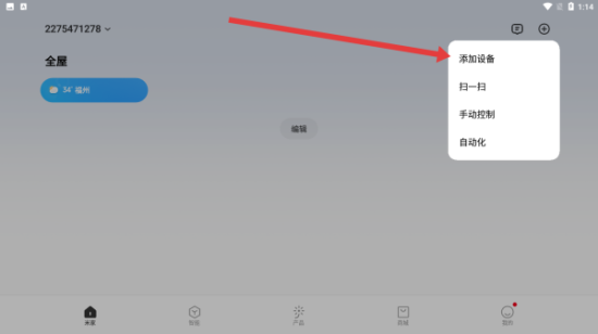 1、可以点击屏幕中右上角的添加设备按钮,进行添加设备操作。