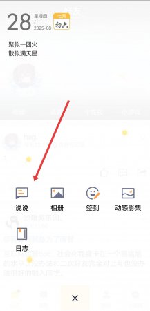 1、打开qq空间,需要在动态发布选项中点击说说,如何进入写说说的编辑页面。