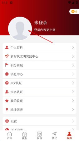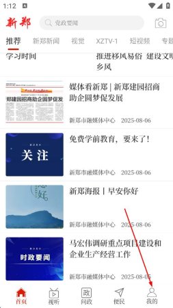 2、在云上新郑首页,点击右下角我的,进入个人页面。