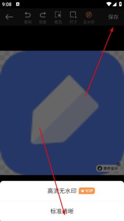 4、完成图片的各项编辑操作,点击右上角保存按钮,选择合适的清晰度即可。