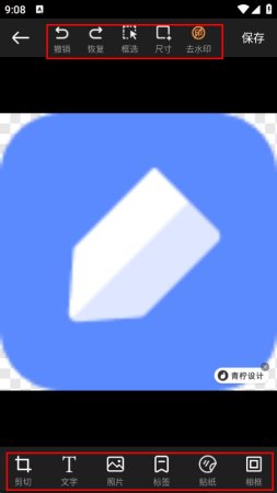 3、进入图片编辑界面,上方有功能按钮,可以对图片进行基础和编辑功能。