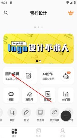 1、打开青柠设计App,在主界面点击图片编辑选项。