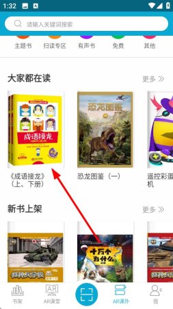 2、在课外图书页面的大家都在读或新书上架等板块中,选择想阅读的图书,比如点击成语接龙上、下册。