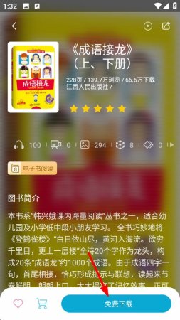 3、进入图书详情页面,查看图书简介等信息后,点击免费下载按钮,将图书下载到设备中。