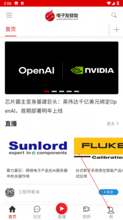 1、打开电子发烧友应用,点击界面右下角的我选项,进入个人页面。