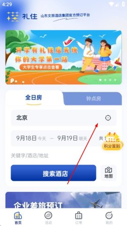 1、打开礼住App,在首页点击城市选择区域。