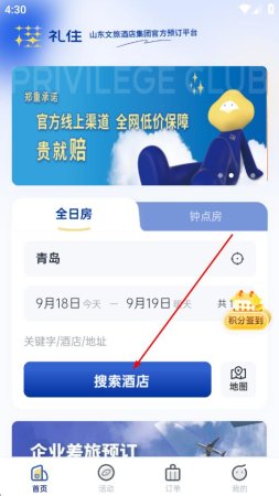 5、设置完成地点和日期后,点击搜索酒店按钮。