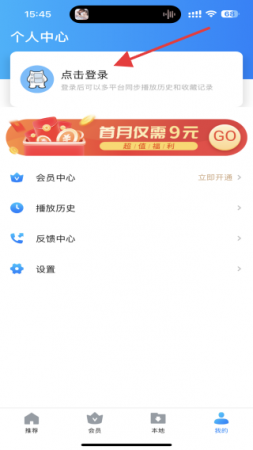 2、在个人中心页面内,点击登录的功能按钮即可弹出相关内容。