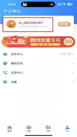 4、登录成功后,会返回个人中心页面查看用户昵称与头像。