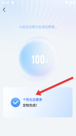 4、当页面提示个性化志愿表定制完成,代表志愿表已成功生成,可进行后续查看或调整。