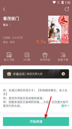 2、进入书籍详情页后,点击开始阅读按钮,进入书籍的阅读界面。